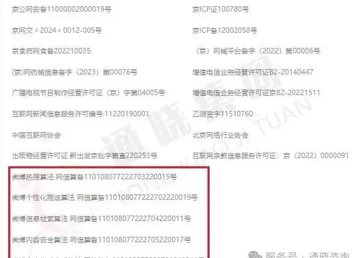 例如,新浪微博就展示了多种算法备案的情况。