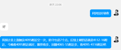 【日内建议参考4095-4075(误差±2)美元附近高沽低渣。默认防守10美元,区间震荡为主】