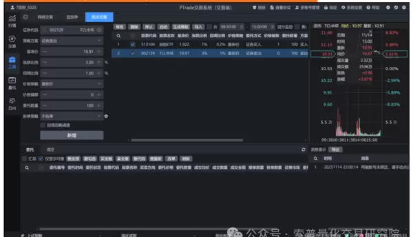 该策略源自ptrade自带的量化工具,但我认为其灵活性有待提高,计划周末对其进行改进。