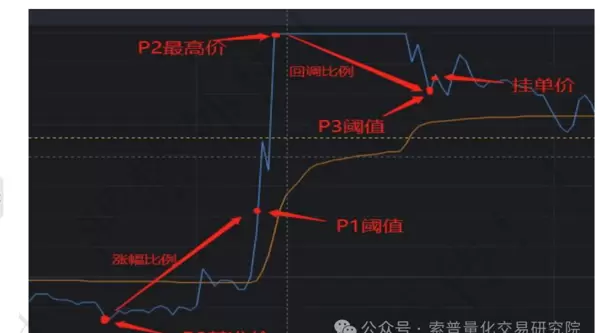 最高价说明:当上涨比率阈值p1达成后,系统将开始记录最高价p2,此价格同样会随市场波动实时更新,p2表示从p1达成起始至当前时间段内的最高市场价格。