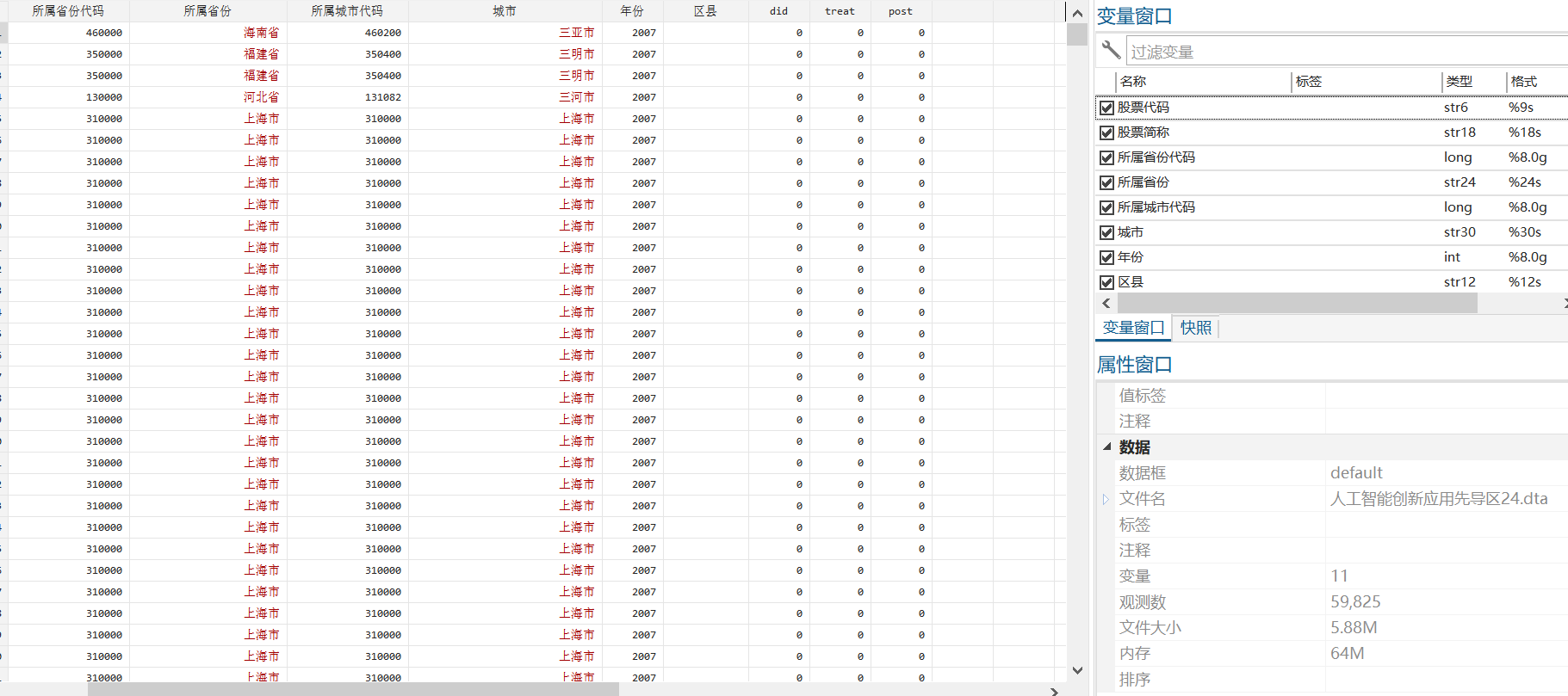 3.面板数据已经处理好可以直接做did,可以直接使用!