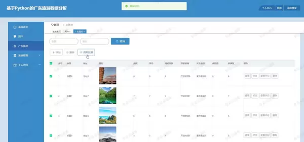 该系统设计了管理端和用户前端两大模块。管理端涵盖了用户管理、广东景点管理、系统管理和个人资料管理等功能;而前台则提供了景点浏览、景点详情展示、用户评论互动以及收藏功能等服务。