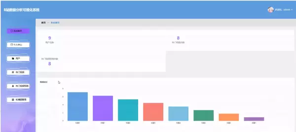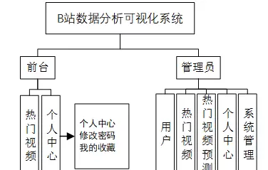 B站数据分析可视化系统的设计目标是将传统的管理手段转化为在线管理模式,实现数据分析可视化的过程更加便捷、安全且规范。系统的主要功能分为管理员功能和用户功能两大部分。