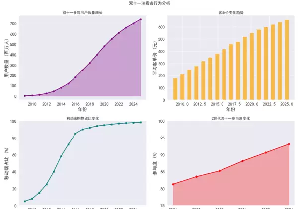 ax4.set_title('Z世代双十一参与度变化', fontsize=14, fontweight='bold')