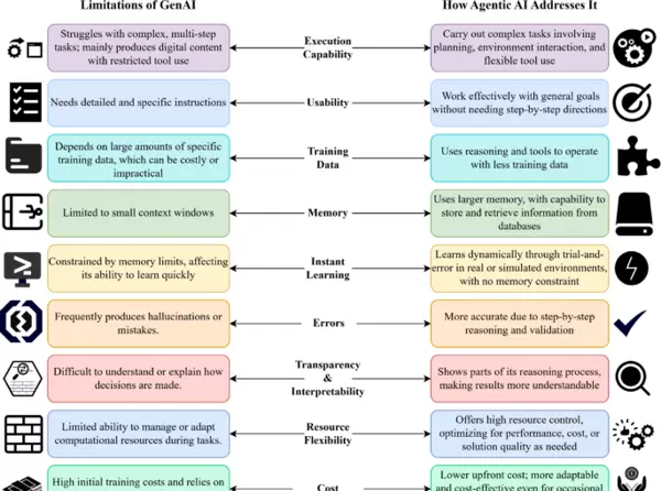 Agentic AI 正是针对这些缺陷引入了显式的功能模块来增强系统能力: