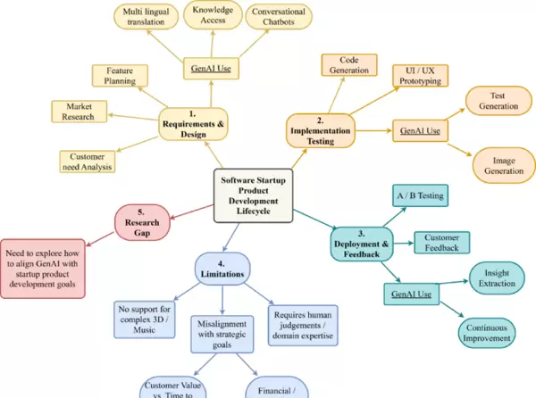 从创业生态的角度出发,综述揭示了生成式 AI 如何重塑软件初创企业的产品开发周期及其竞争优势的形成机制。这一变化不仅体现在技术实现层面,更深刻影响着商业模式创新和市场进入策略。