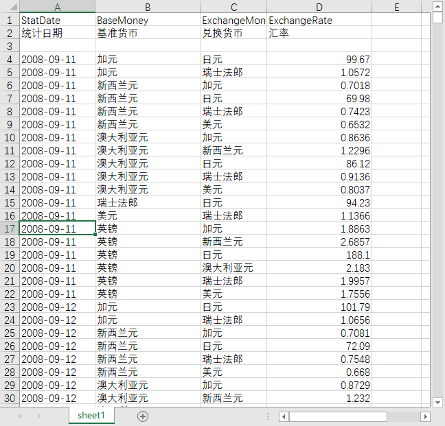 统计日期 基准货币 兑换货币 汇率
