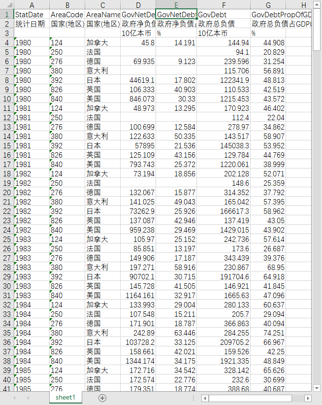 统计日期 国家(地区)代码 国家(地区)名称 政府净负债 政府净负债占GDP的比例 政府总负债 政府总负债占GDP的比例