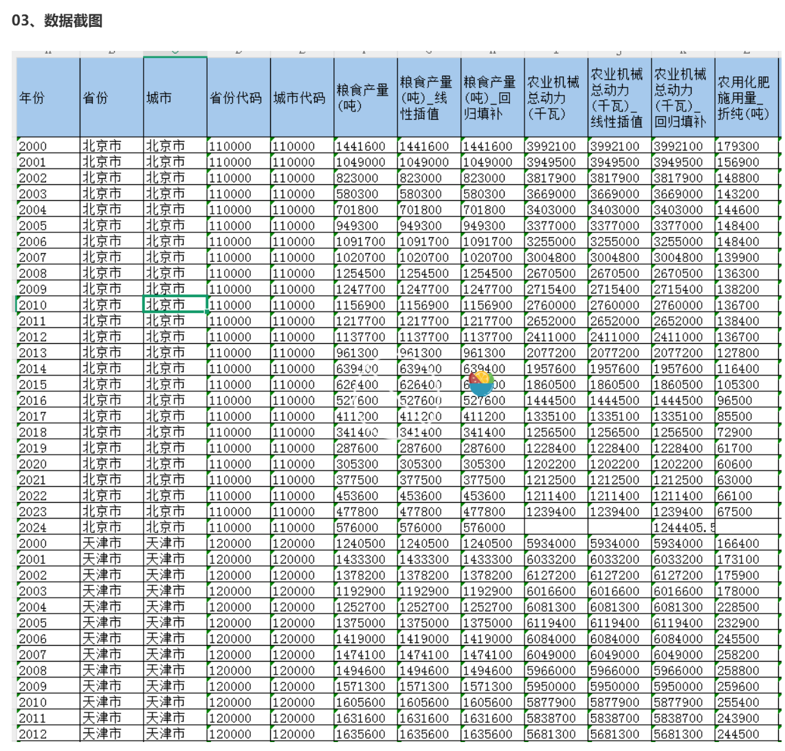 地级市-农林牧渔业相关数据(2000-2024年)01、数据简介