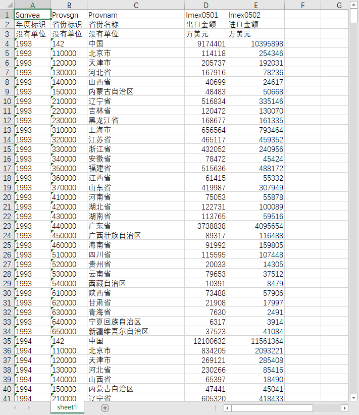 年度标识 省份标识 省份名称 出口金额 进口金额