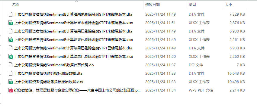 上市公司投资者情绪SentimentB2001-2024年含do代码和excel-dta格式数据