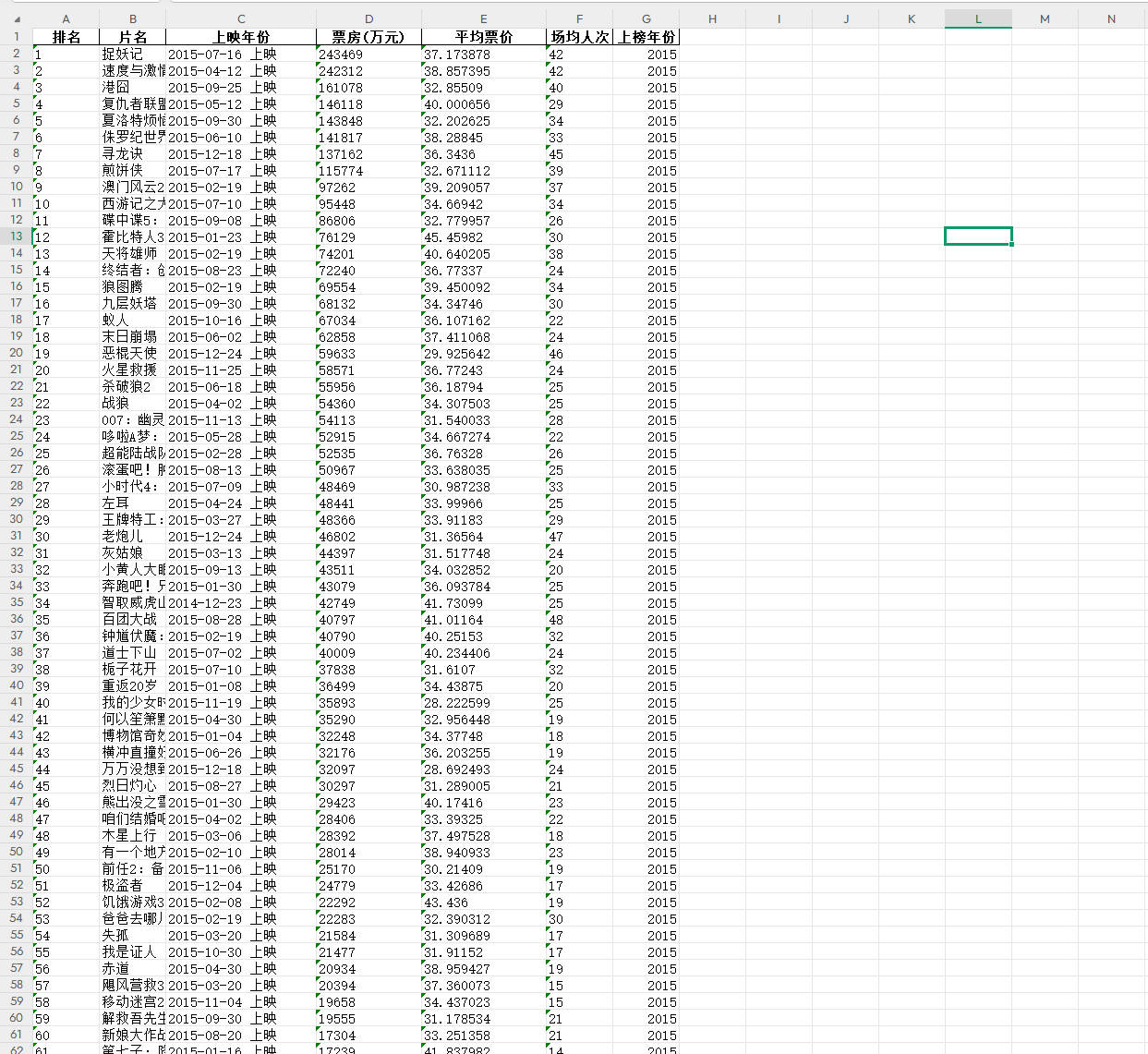 数据用途:用于分析电影市场商业表现、票房趋势研究、影片竞争力评估、市场预测分析等