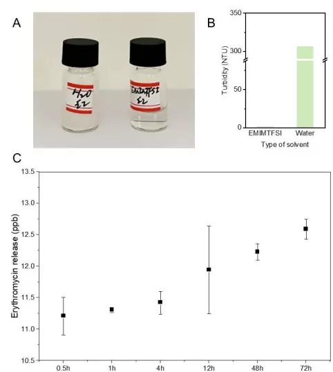 - 高效抗菌:EMIMTFSI中的阳离子及疏水链可破坏细菌细胞膜,对大肠杆菌和金黄色葡萄球菌的抑菌率均达100%,显著优于传统水凝胶,有助于预防感染。