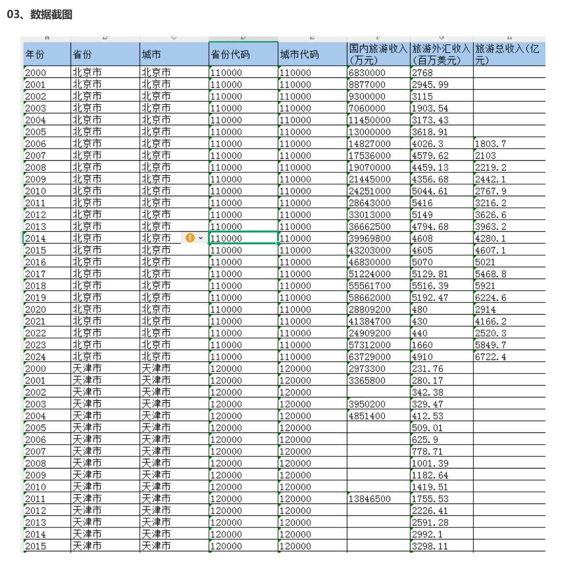 地级市-旅游收入数据(2000-2024年)01、数据简介