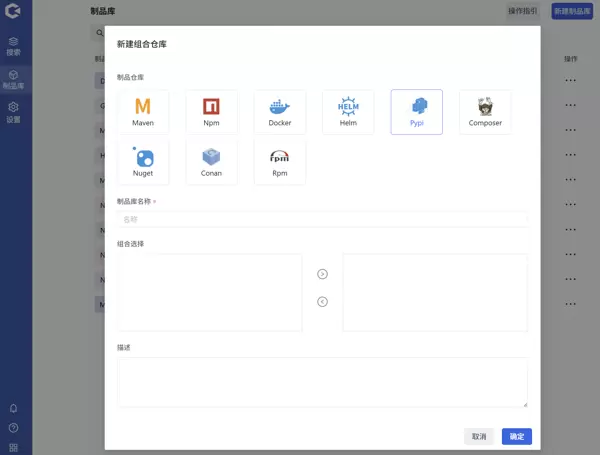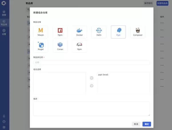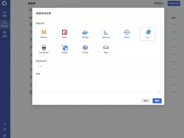 进入“新建制品库”页面,选择“本地库”类型,填写必要信息后点击确认即可完成创建。
