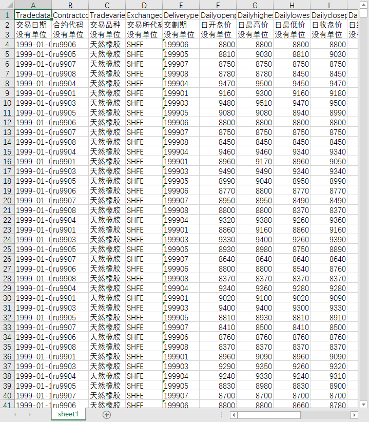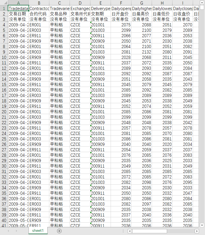 交易日期 合约代码 交易品种 交易所代码 交割期 日开盘价 日最高价 日最低价 日收盘价 日结算价 涨跌1 涨跌2 成交量 持仓量 持仓量变化 成交金额