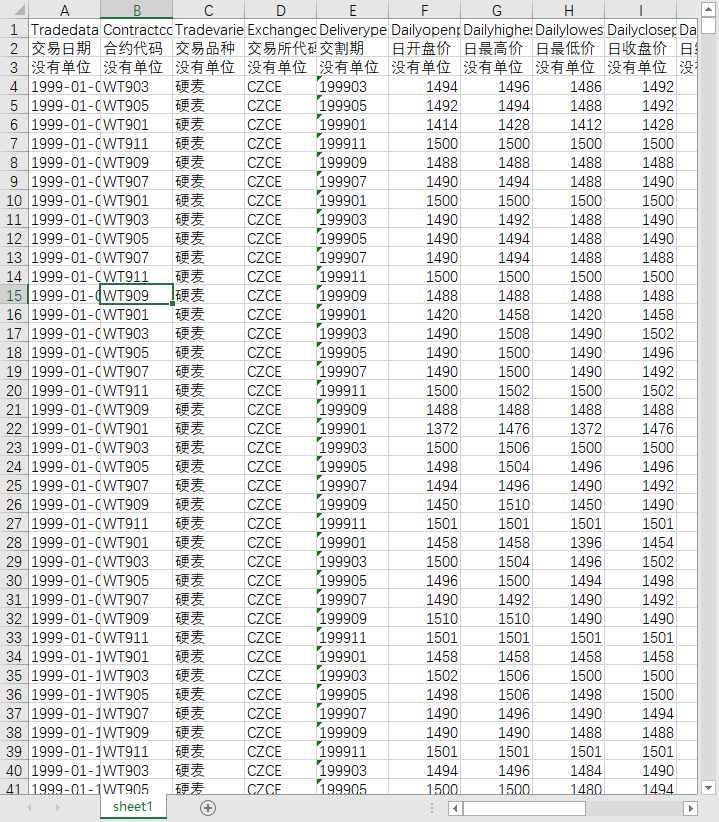 交易日期 合约代码 交易品种 交易所代码 交割期 日开盘价 日最高价 日最低价 日收盘价 日结算价 涨跌1 涨跌2 成交量 持仓量 持仓量变化 成交金额