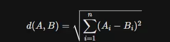 欧几里得距离衡量的是两点之间的直线距离,其计算公式如下:
