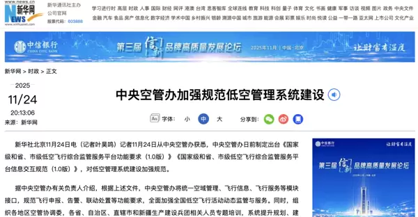 为进一步保障规范实施,中央空管办将组织专项培训工作,助力各地提升平台规划建设与运行管理水平。通过完善航空器登记管理、操作资质认证、电子围栏设置等基础监管模块,逐步实现有人驾驶与无人驾驶航空器、国家与民用航空器的统一监管机制。