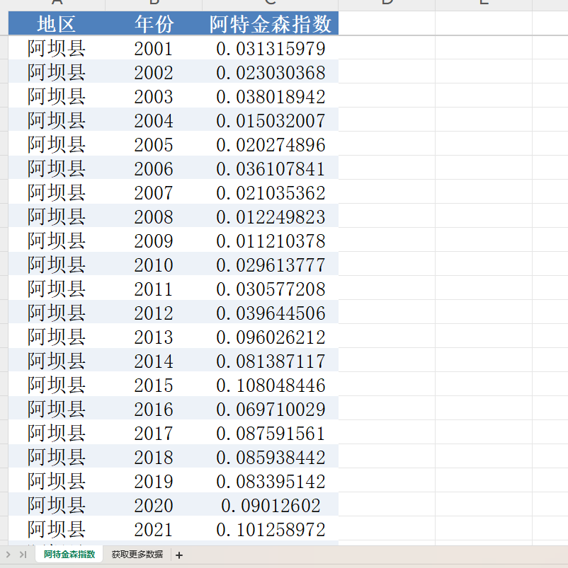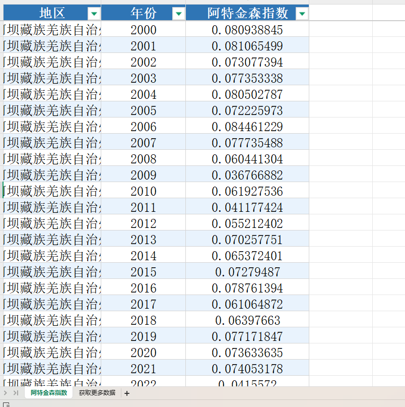 各省份、城市、区县阿特金森指数,2000-2024年,整理好的面板数据,excel版本