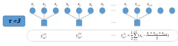 对于原始时间序列 {x, x, ..., x},按尺度因子 τ 进行粗粒化处理,计算每个尺度单元内的方差值,形成新的粗粒化序列: