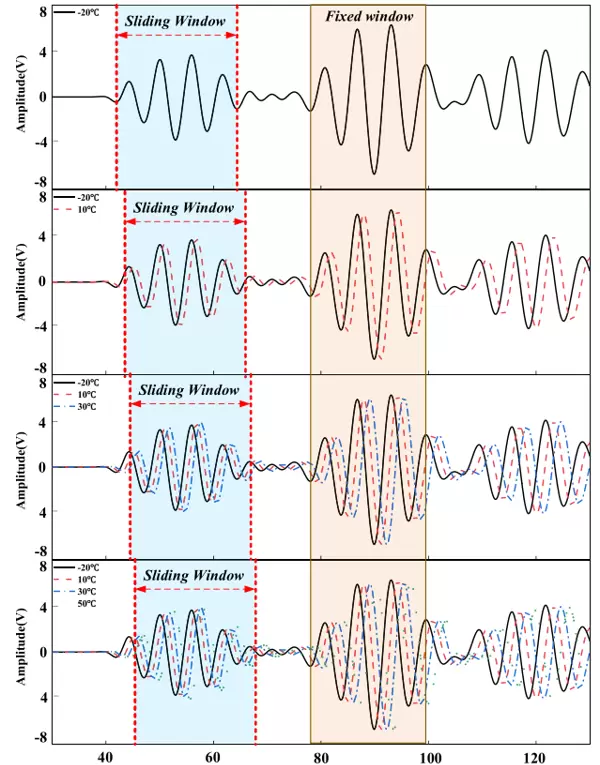 传统分析通常仅选取S0模式首个波包作为研究对象,但Lamb波的频散效应使其在传播中发生展宽,同时温度与损伤共同引起波包时移,固定窗口极易丢失关键信息。