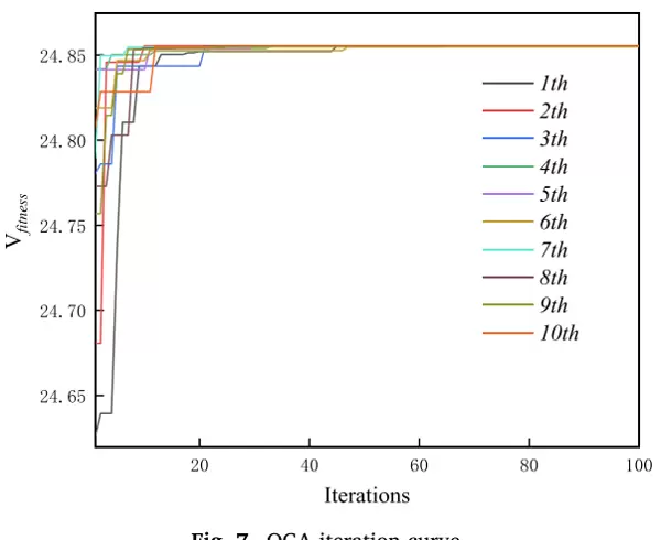 对量子遗传算法(QGA)重复运行10次,所得结果完全一致,表明该优化过程具备优异的稳定性和抗干扰能力。同时,收敛速度较快,能够在较少迭代次数内找到全局最优参数组合。