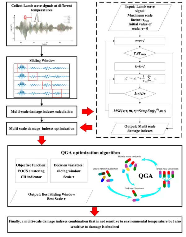 本研究提出了一种自适应多尺度熵分析方法,通过融合滑动窗口策略、方差多尺度变换与量子遗传算法优化,成功解决了变温环境下Lamb波用于结构健康监测时面临的敏感性与鲁棒性矛盾问题。