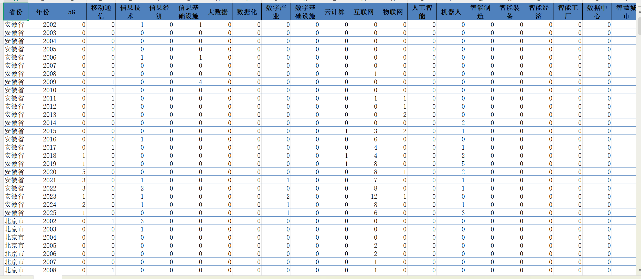 省份 | 年份 | 5G |