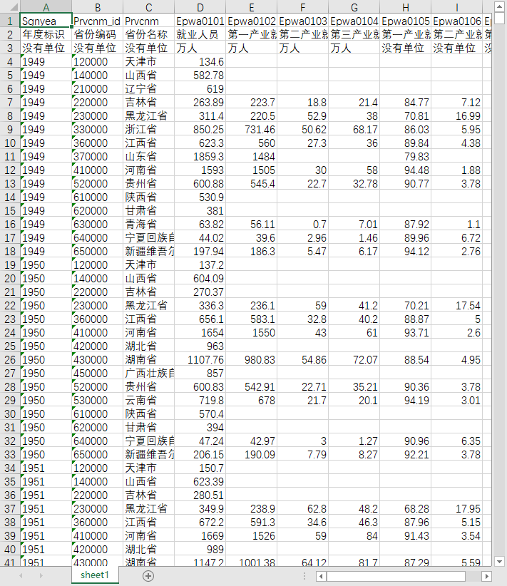 年度标识 省份编码 省份名称 行业名称 职工人数
