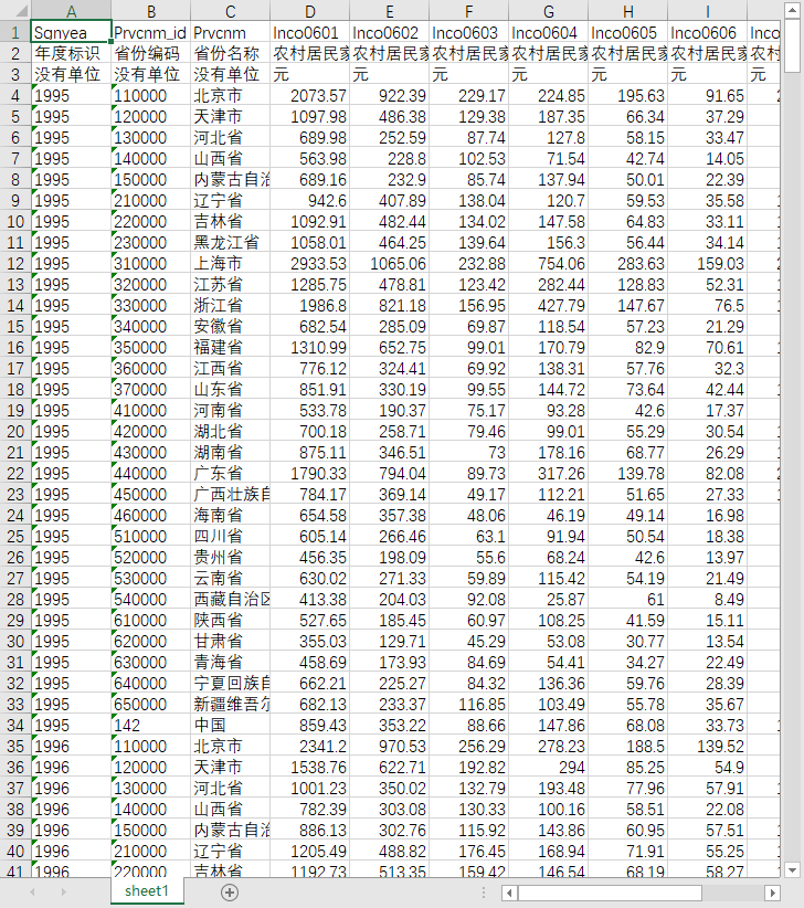 年度标识 省份编码 省份名称 农村居民家庭平均每人全年生活消费支出合计 农村居民家庭平均每人全年食品支出 农村居民家庭平均每人全年衣着支出 农村居民家庭平均每人全年居住支出 农村居民家庭平均每人全年家庭设备及服务支出 农村居民家庭平均每人全年交通和通讯支出 农村居民家庭平均每人全年文教、娱乐用品及服务支出 农村居民家庭平均每人全年医疗保健支出 农村居民家庭平均每人全年其他商品及服务支出