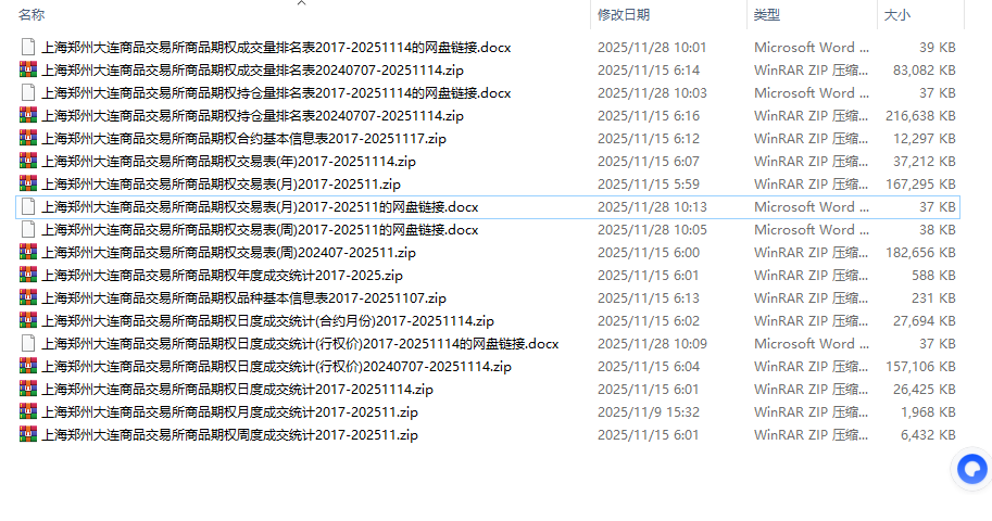 上海郑州大连商品交易所商品期权日度成交统计2017-20251114.zip