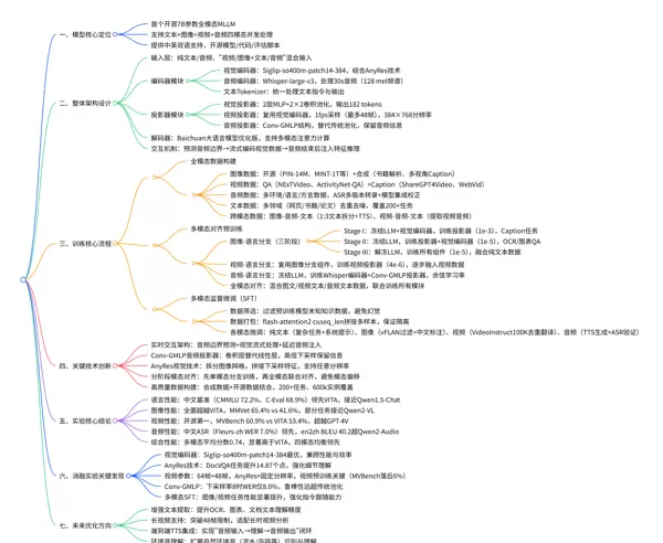 Baichuan-Omni 的成功实践证实了“轻量化架构 + 高质量数据 + 精细化对齐”是构建高效全模态模型的有效路径,为开源生态提供了重要借鉴: