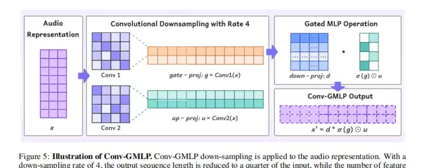 - 音频投影器:引入创新的 Conv-GMLP 结构,替代传统池化方式,有效保留音频中的细节信息。