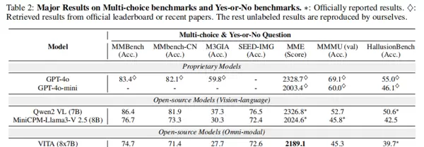 - 在 MMBench-CN、MMMU、MMVet 等核心指标上全面优于 VITA(如 MMVet 65.4% vs 41.6%);