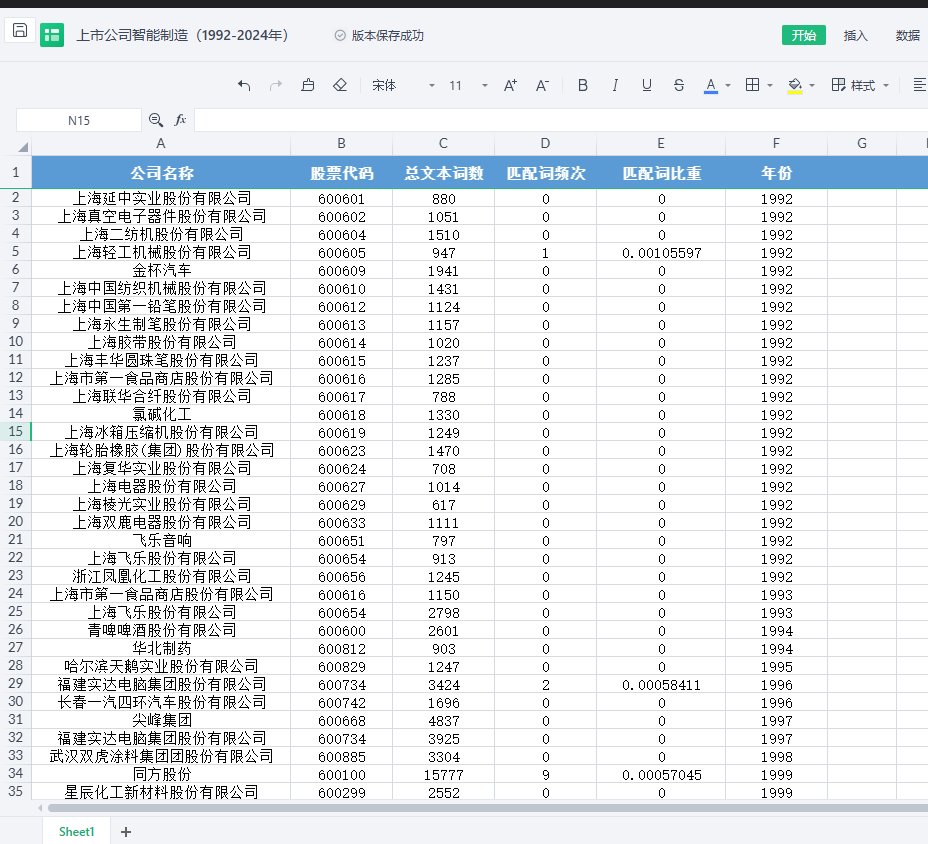 包含指标:公司名称 股票代码 总文本词数 匹配词频次 匹配词比重 年份