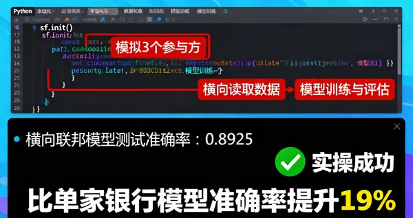 相较于单家银行独立训练模型(准确率约为0.75),整体性能提升了19%。这一结果充分验证了“数据联合”在提升模型表现方面的显著价值。