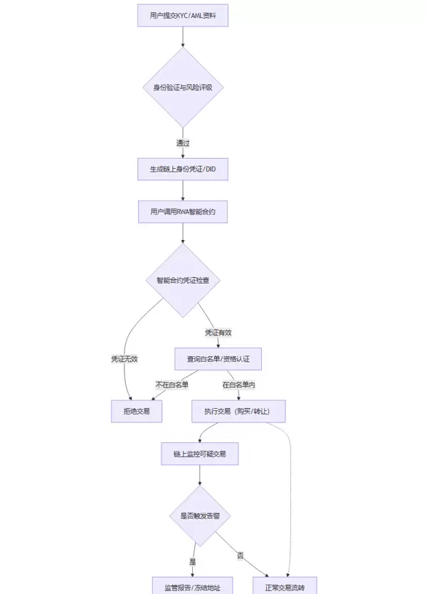 合规工程的核心理念是将监管要求转化为可执行的代码逻辑,并将其固化于智能合约与平台架构中,从而实现自动化、可审计的合规流程。以下是一个典型RWA合规机制的技术实现: