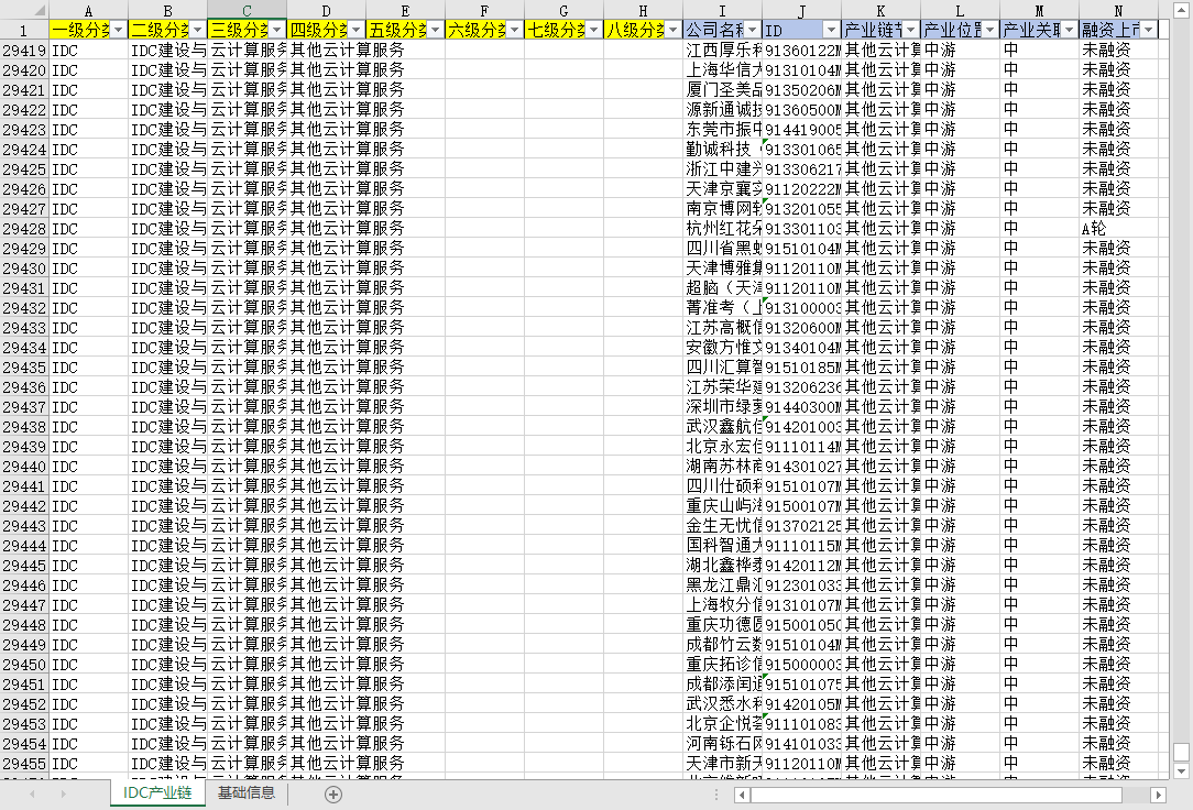 一级分类 二级分类 三级分类 四级分类 五级分类 六级分类 七级分类 八级分类 公司名称 ID 产业链节点 产业位置 产业关联性 融资上市