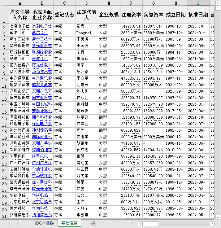 互联网数据中心IDC产业链上中下游企业信息1949-2025算力芯片服务器更多电话法定代表人所属行业省份城市区县等