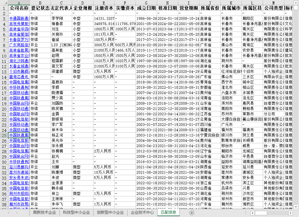 原文件导入名称 登记状态 法定代表人 企业规模 注册资本 实缴资本 成立日期 核准日期 营业期限 所属省份 所属城市 所属区县 企业(机构)类型 国标行业门类 国标行业大类 国标行业中类 国标行业小类 曾用名 英文名 统一社会信用代码 纳税人识别号 注册号 组织机构代码 参保人数 参保人数所属年报 电话 更多电话 企业地址 通信地址 官网 邮箱 更多邮箱 经营范围 登记机关 纳税人资质 企业简介 最新年报年份 等等