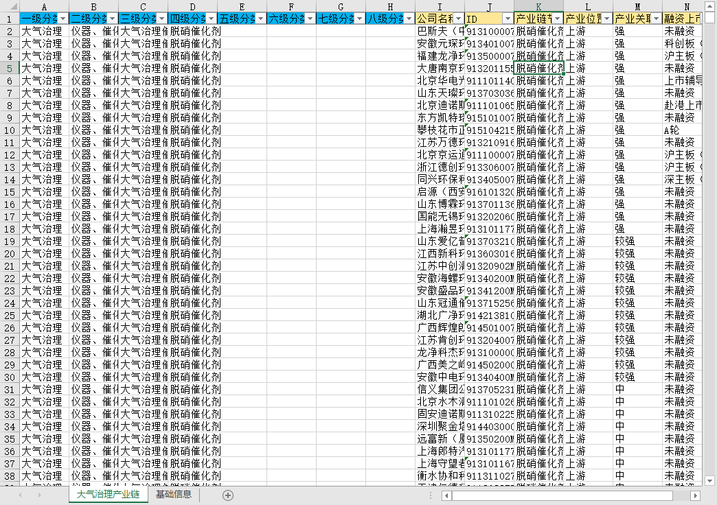 一级分类 二级分类 三级分类 四级分类 五级分类 六级分类 七级分类 八级分类 公司名称 ID 产业链节点 产业位置 产业关联性 融资上市