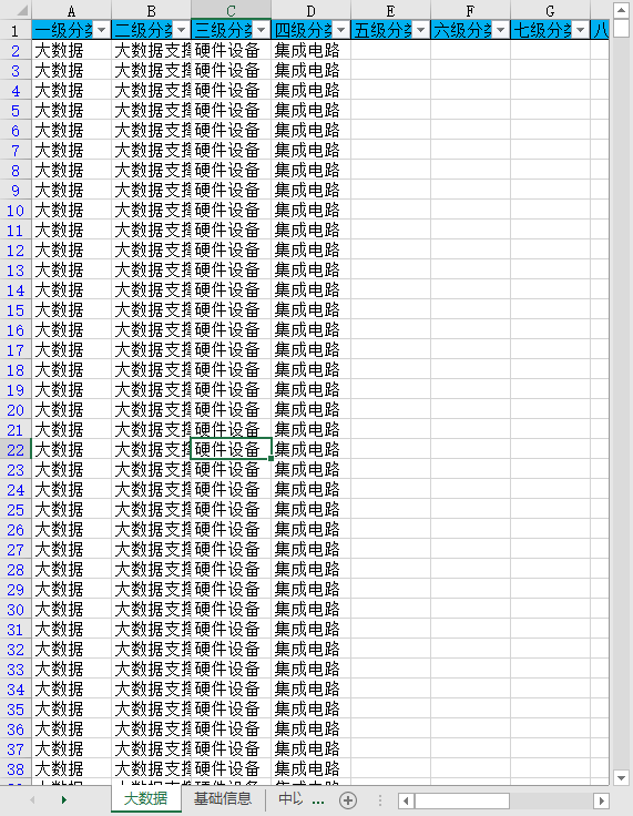 一级分类 二级分类 三级分类 四级分类 五级分类 六级分类 七级分类 八级分类 公司名称 ID 产业链节点 产业位置 产业关联性 融资上市