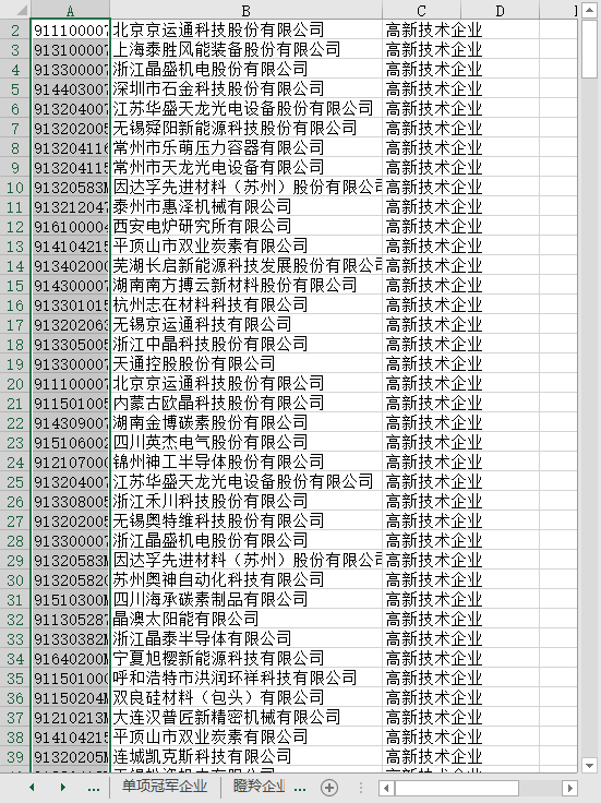 本数据文件压缩还包含:上下游相关企业荣誉资质一览表(雏鹰企业、创新型中小企业、瞪羚企业、独角兽企业、高新技术企业、科技型中小企业、企业技术中心、单项冠军企业等)