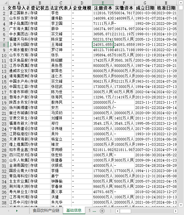 食品饮料产业链上中下游企业2025供应链物流冷链物流农业种植食品添加剂水产畜禽养殖参保人数更多电话法定代表人所属行业省份城市区县等