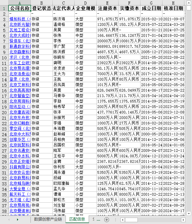 原文件导入名称 登记状态 法定代表人 企业规模 注册资本 实缴资本 成立日期 核准日期 营业期限 所属省份 所属城市 所属区县 企业(机构)类型 国标行业门类 国标行业大类 国标行业中类 国标行业小类 曾用名 英文名 统一社会信用代码 纳税人识别号 注册号 组织机构代码 参保人数 参保人数所属年报 电话 更多电话 企业地址 通信地址 官网 邮箱 更多邮箱 经营范围 登记机关 纳税人资质 企业简介 最新年报年份 等等