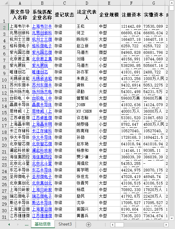 原文件导入名称 登记状态 法定代表人 企业规模 注册资本 实缴资本 成立日期 核准日期 营业期限 所属省份 所属城市 所属区县 企业(机构)类型 国标行业门类 国标行业大类 国标行业中类 国标行业小类 曾用名 英文名 统一社会信用代码 纳税人识别号 注册号 组织机构代码 参保人数 参保人数所属年报 电话 更多电话 企业地址 通信地址 官网 邮箱 更多邮箱 经营范围 登记机关 纳税人资质 企业简介 最新年报年份 等等