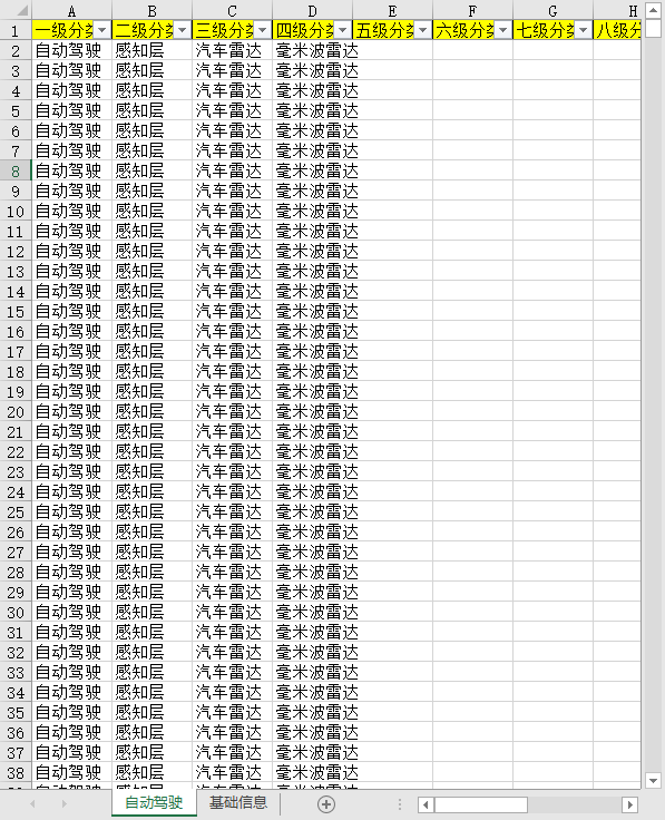 一级分类 二级分类 三级分类 四级分类 五级分类 六级分类 七级分类 八级分类 公司名称 ID 产业链节点 产业位置 产业关联性 融资上市