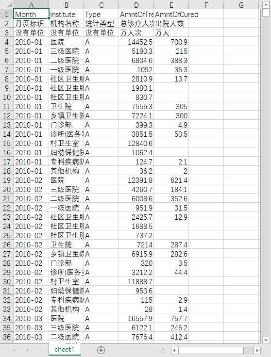 月度标识 机构名称 统计类型 总诊疗人次数 出院人数