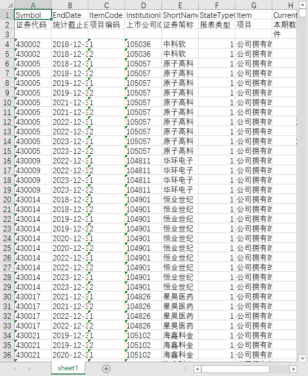 证券代码 统计截止日期 项目编码 上市公司ID 证券简称 报表类型 项目 本期数量 上期数量